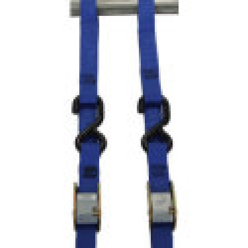 Ancra Ingtegra Classic Tie Down, Blue, 4,500 lb. tensile strength webbing, 2-vinyl coated "S" hooks, Overall length of 66", 1,200 lb. min. assembly strength, 400 lb. working load capacity. Packaged in pairs